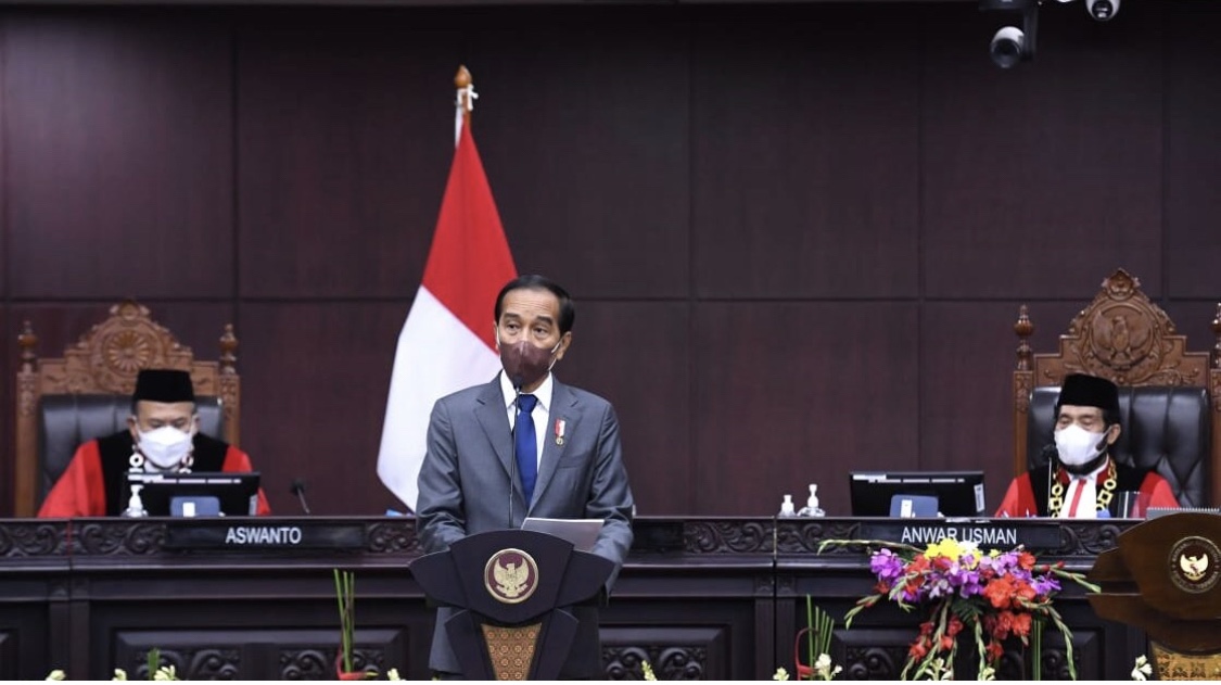 “Saya yakin dan percaya dengan transformasi yang dilakukan, MK akan menemukan momentum menyiapkan langkah lebar untuk melakukan lompatan kemajuan, mengukuhkan peran sebagai pengawal dan penjaga konstitusi,” ujar Presiden saat memberikan sambutan dalam Sidang Pleno Khusus Penyampaian Laporan Mahkamah Konstitusi Tahun 2021 di Ruang Sidang Mahkamah Konstitusi, Jakarta, pada Kamis, 10 Februari 2022.