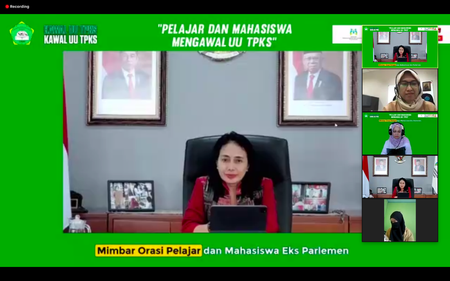 Menteri Pemberdayaan Perempuan dan Perlindungan Anak (PPPA) Bintang Puspayoga menyebut pemerintah khususnya Kementerian Pemberdayaan Perempuan dan Perlindungan Anak (Kemen PPPA) membutuhkan dukungan semua pihak, termasuk pelajar dan mahasiswa sebagai penggerak perubahan yang harus aktif mengawal UU TPKS hingga implementasi dan dikeluarkan aturan-aturan turunannya. Dalam hal ini Menteri Bintang mengapresiasi Organisasi Pelajar dan Mahasiswa tingkat nasional yang turut mengawal UU TPKS.