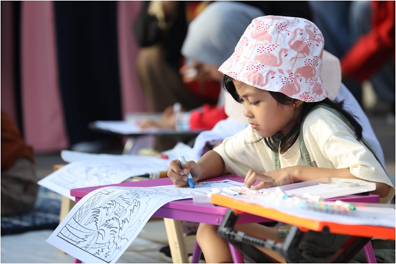 Salah satunya dengan mengadakan lomba mewarnai. Didampingi orang tuanya, puluhan anak ikut dalam lomba tersebut.