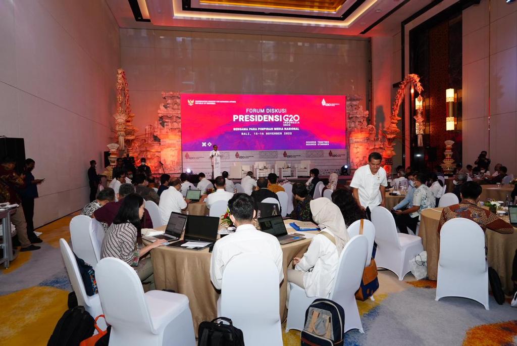 Untuk meningkatkan keterlibatan media nasional, Kementerian Koordinator Bidang Perekonomian menyelenggarakan Forum Diskusi Hasil Working Groups G20 bersama sejumlah Pemimpin Redaksi pada 15-16 November 2022 di Jimbaran, Bali.