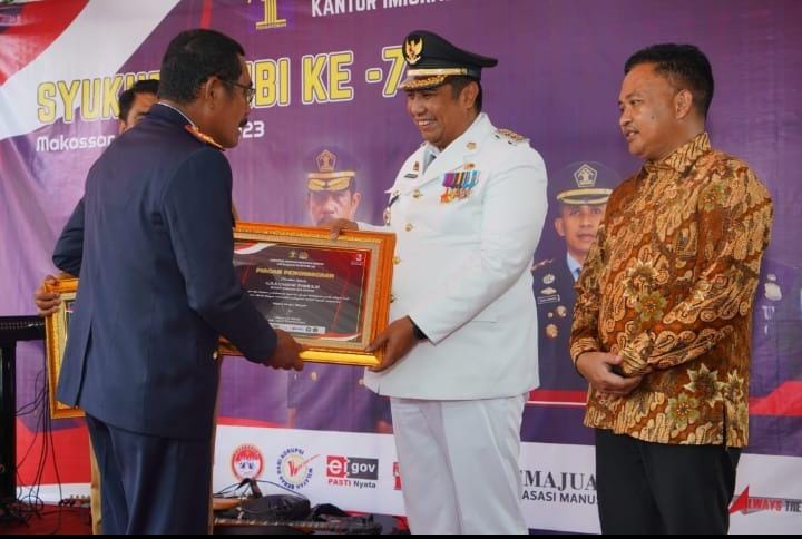 Walai.id, Maros – Dalam rangka Hari Bakti Imigrasi ke-73, Kantor Wilayah Kementrian Hukum dan HAM (Kanwil Kemenkunham) Sulawesi selatan memberikan penghargaan kepada Pemerintah Kabupaten (Pemkab) Maros bertempat di Kantor Imigrasi Makassar, Kamis (26/01/23).