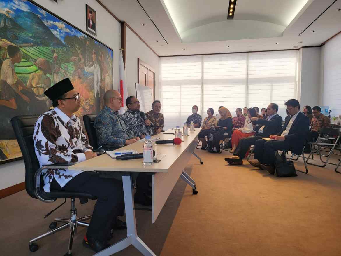 Menag, yang didampingi oleh Kepala Badan Penyelenggara Jaminan Produk Halal (BPJPH) Muhammad Aqil Irham, berada di Jepang dalam kunjungan kerja. Pertemuan dengan perwakilan KBRI di Tokyo menjadi awal dari serangkaian kunjungan kenegaraan Menag Yaqut Cholil Qoumas.