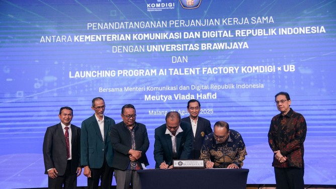 Walai.id, Malang – Kementerian Komunikasi dan Digital (Komdigi) resmi meluncurkan Artificial Intelligence (AI) Talent Factory, sebuah inisiatif untuk mencetak talenta kecerdasan artifisial yang mampu menghasilkan solusi dan produk orisinal karya anak bangsa. Universitas Brawijaya (UB), Malang, menjadi kampus pertama peluncuran program tersebut, Kamis (21/8/2025).
