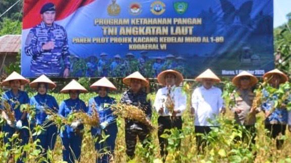 Walai.id, Maros – Dalam rangka memperingati Hari Ulang Tahun Tentara Nasional Indonesia (HUT TNI) ke-80 Tahun 2025, Wakil Bupati Maros Andi Muetazim Mansyur, S.T., M.Si bersama Komandan Komando Daerah Angkatan Laut (KODAERAL) VI Makassar dan Kepala Dinas Pertanian dan Ketahanan Pangan Provinsi Sulawesi Selatan melaksanakan panen raya program pilot project kacang kedelai MIGO AI KODAERAL VI Makassar, Rabu (1/10/2025).